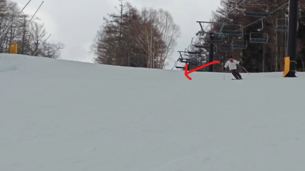 - 効果: 100%外足に乗らざるを得ない状況を作ることで、ターン中にどうやってバランスが取れるのか?また、どこで外足に乗れていないのか?が分かるトレーニングになっています。